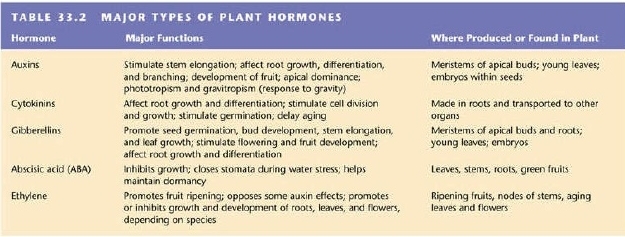 - There are roughly 5 types of hormones, all deal with promoting/inhibiting growth.